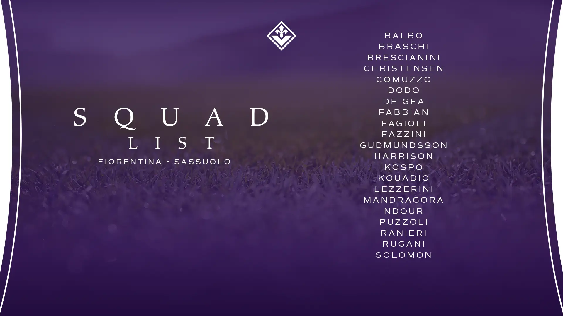 La lista dei convocati viola per la partita contro il Sassuolo: