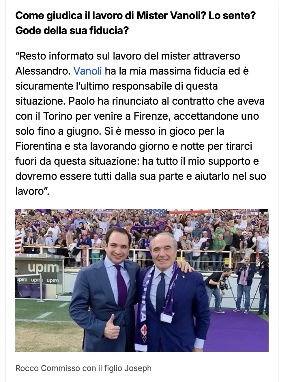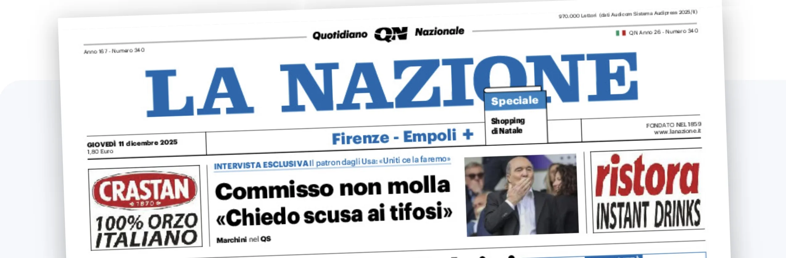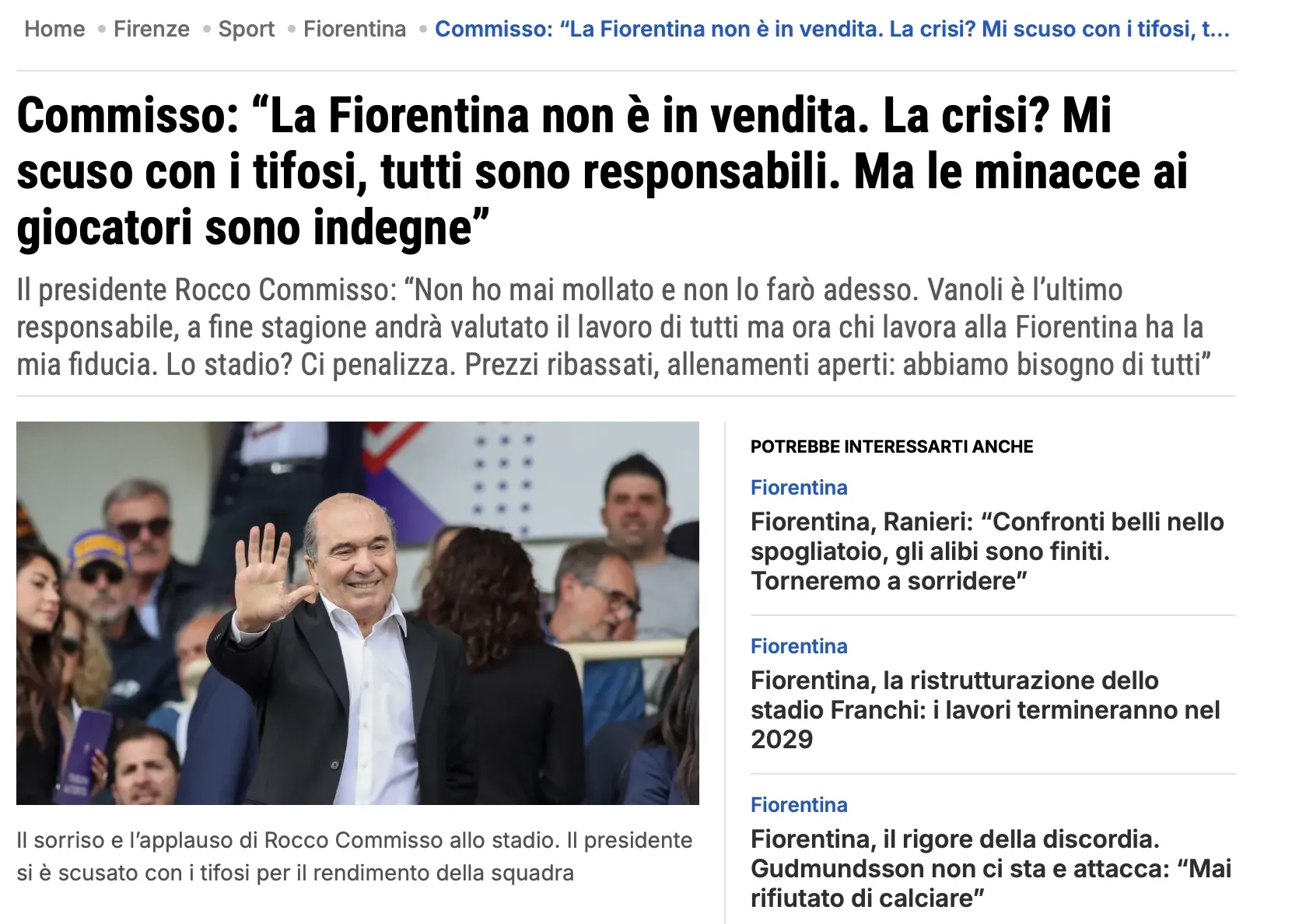 Lunga intervista a firma di Giampaolo Marchini sulle pagine de 'La Nazione' al Presidente Rocco Commisso.